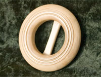 Pendants, belts and buckles. Various items made by ourselves combining fibre crafts and wood craft using various techniques including luceting and stick weaving.