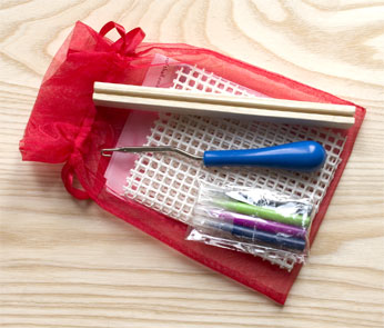 We also supply a gift pack containing a normal cutter, a latch hook, a section of latch hook backing material, pens to sketch your design on the backing and basic instructions. (colour of contents may vary from illustration)