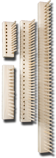 Our peg looms are handmade by ourselves and come in four lengths, and all the but the longest come in single and double row configurations.